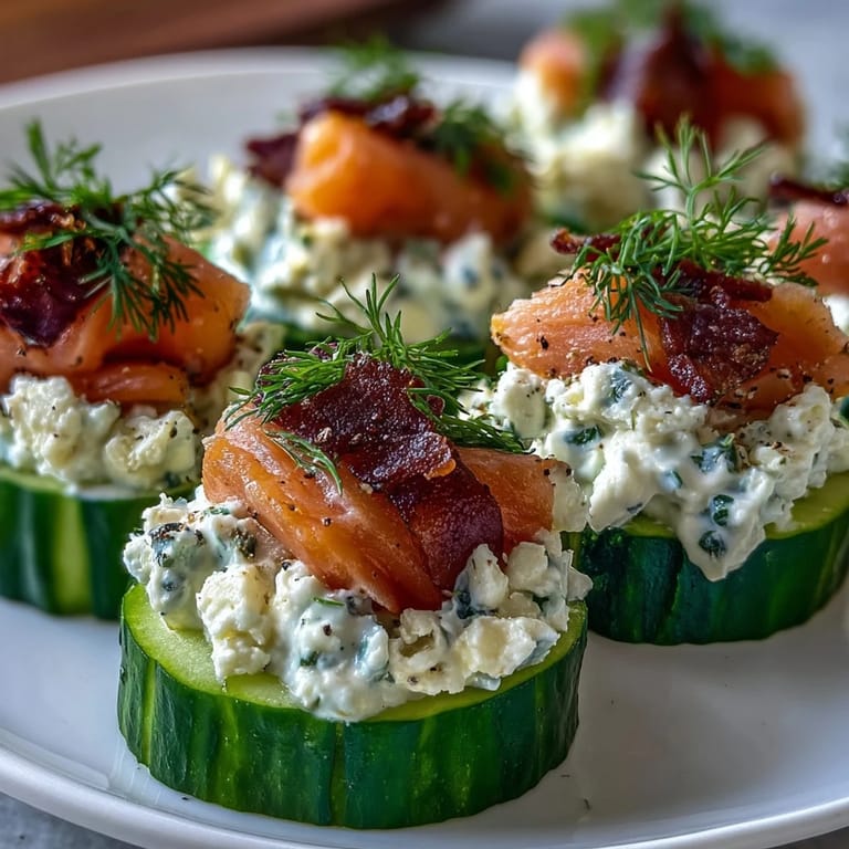 Save My neighbor pulled me aside at a garden party last summer with a knowing smile and whispered, "You have to try these." One bite of her cucumber rounds with smoked salmon changed how I think about appetizers—suddenly, simple became sophisticated. The crisp snap of cucumber, the cool creaminess, the salty salmon all colliding at once felt like a tiny celebration on a cracker-free plate. Since then, I've made these dozens of times, each batch easier and more confident than the last. They're the kind of dish that makes you look like you spent hours in the kitchen when really, you've just borrowed a few minutes and some good ingredients.
