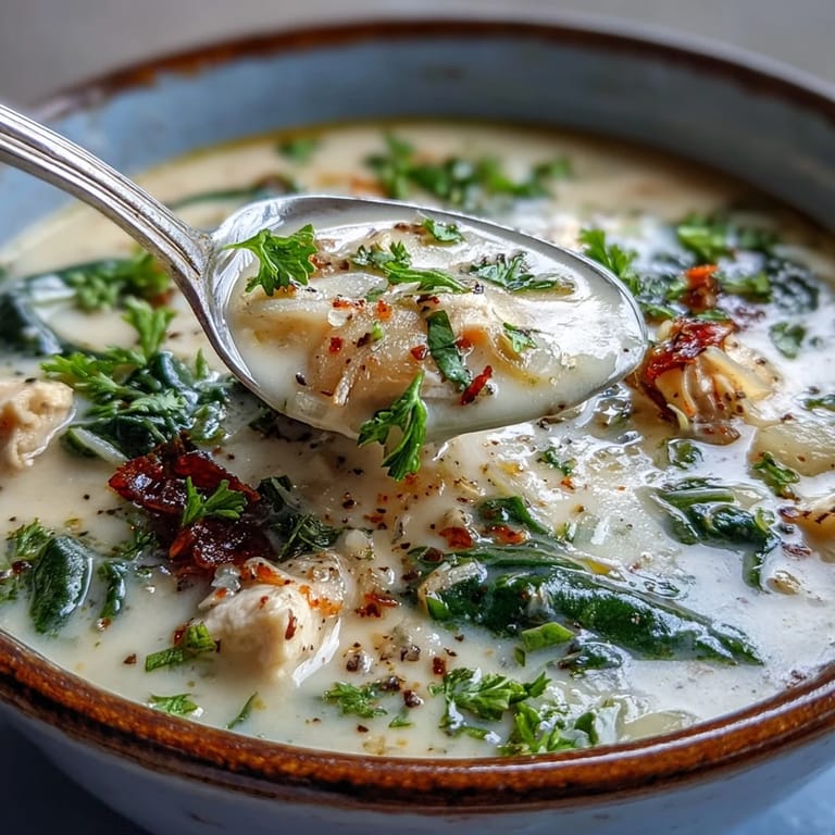 Save The smell of garlic hitting hot olive oil still makes me drop everything and head to the kitchen. One Thursday evening, I was craving something warm and filling but didn't want to spend an hour hovering over the stove. I threw together chicken, cream, and a generous handful of Parmesan, and the result was so good my neighbor asked for the recipe through the window. This soup has been my go-to ever since.