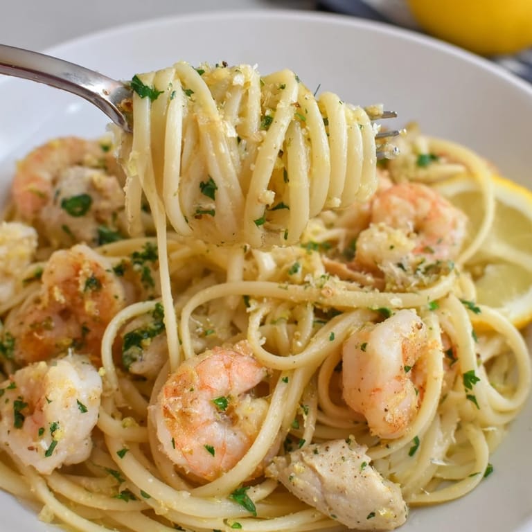 Save The first time I made this pasta, my kitchen filled with the most incredible garlic-lemon aroma that had my roommate wandering in from her room asking what was happening. I'd been craving something that felt fancy enough for date night but was still manageable on a Tuesday evening. The combination of shrimp and chicken felt indulgent, and that bright lemon butter sauce just makes everything feel special. Now it's become my go-to when I want to treat myself without spending hours at the stove.
