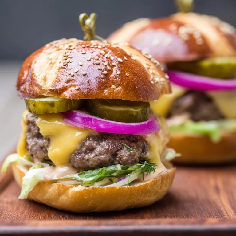 Last summer, my daughter helped me assemble thirty of these for her birthday party. She took her job as sauce spreader so seriously, and I watched her carefully place each pickle slice like she was decorating cupcakes. When her friends ran over from the bounce house, eyes lighting up at the tower of sliders, I realized these weren't just food—they were little handheld moments of joy. The best part was seeing parents actually sit down and eat instead of hovering over the snack table.